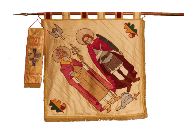 - Kreuzfahne: Im Jahr 1937 wurde die Kreuzfahne erstellt, welche heute nicht mehr getragen wird, sondern im Pfarrheim aufgehangen ist.