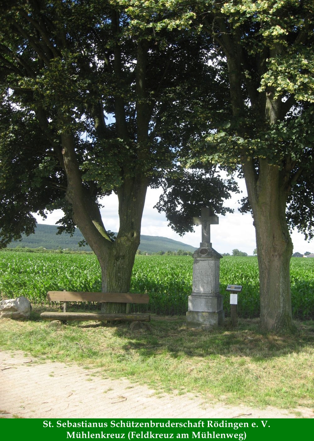 Die beiden Lindenbäume wurden 1964 durch Mitglieder des Imkervereins Immentreu Lich-Steinstraß gepflanzt. 2014 wurde das Denkmal von Leo Gehlen (Mühle) an die St. Sebastianus-Schützenbruderschaft Rödingen e.V. übertragen. Die Pflege wird weiterhin von der Familie Gerken Klasend ausgeführt.