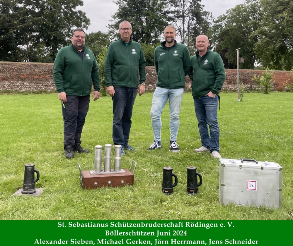 Die Rödinger Schützen freuen sind nach vielen Jahren wieder vier geprüfte Böllerschützen zu haben, um die Tradition des Böllerns zu den großen Festen wieder aufleben zu lassen.